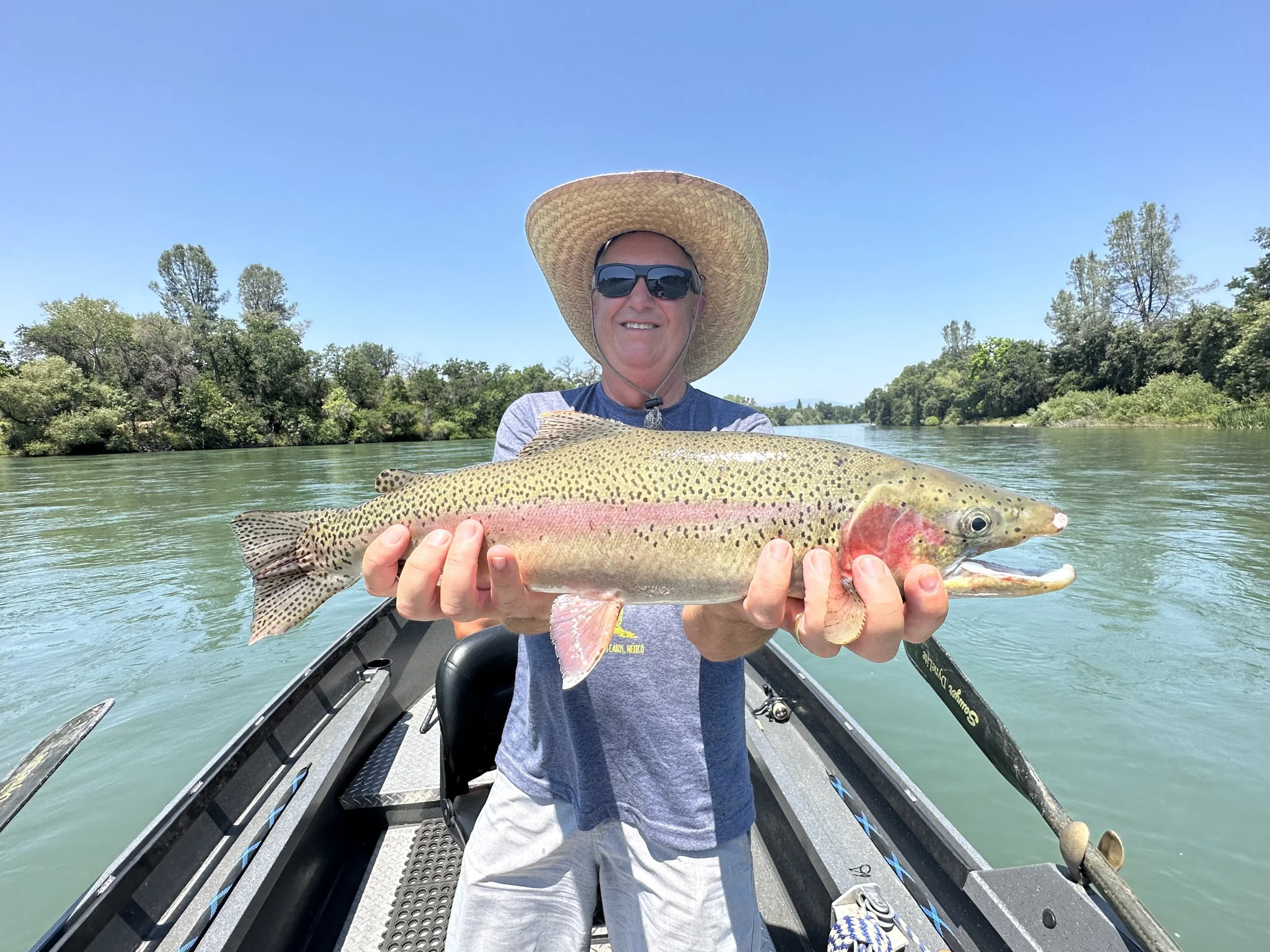 The lower Sacramento River in Redding ca, is definitely the place to be if you want to catch lots of world class wild Rainbow/steelhead. We are catching 25 to 40 fish everyday, the upper section has been closed since April 1st, come august 1st this upper section will reopen, it’s going to be some of the best fishing we see on the Sacramento River. I only got 4 days available to fish this section in august. Don’t look past this opportunity to get in my boat. You will be glad you did!!