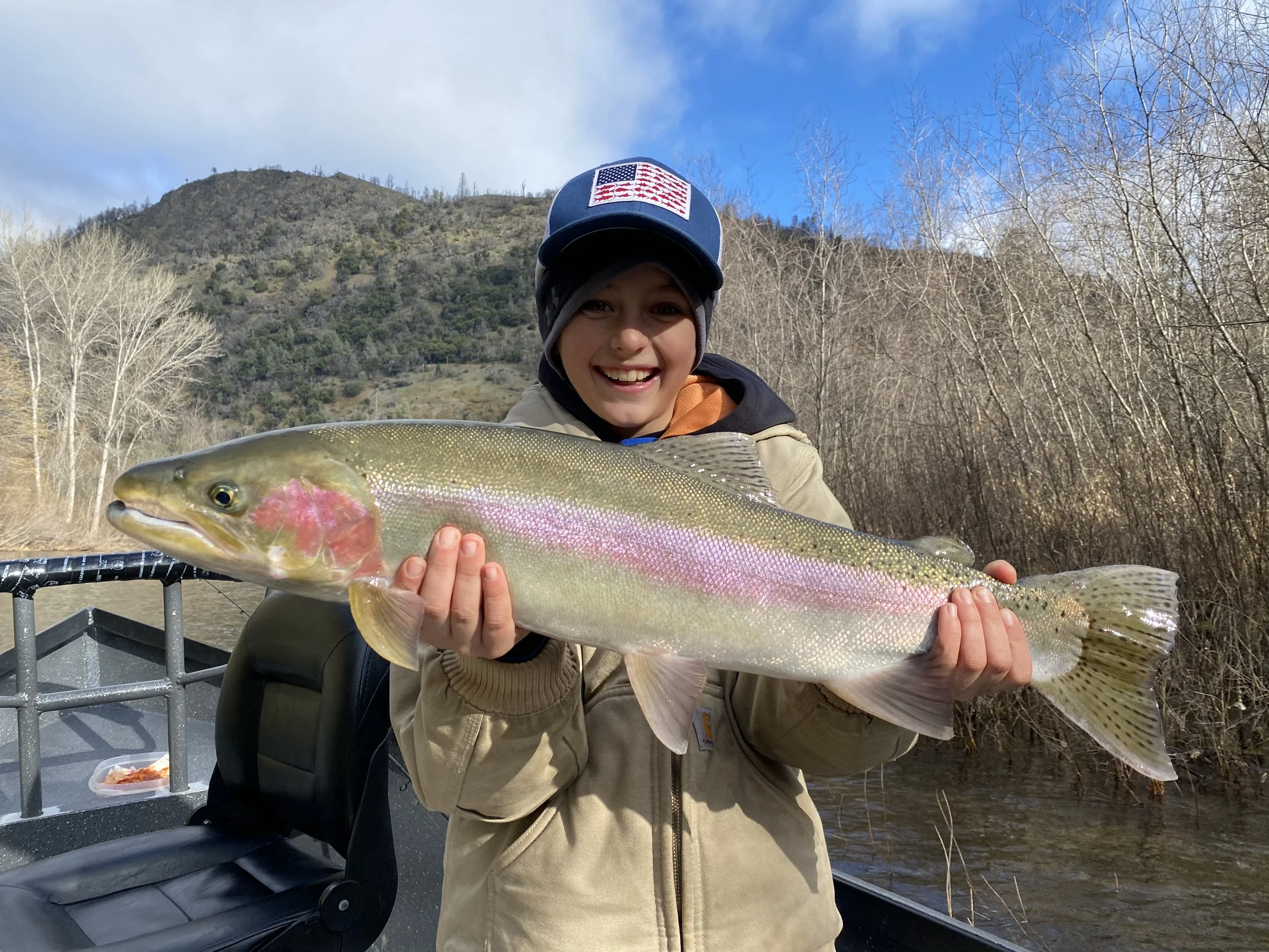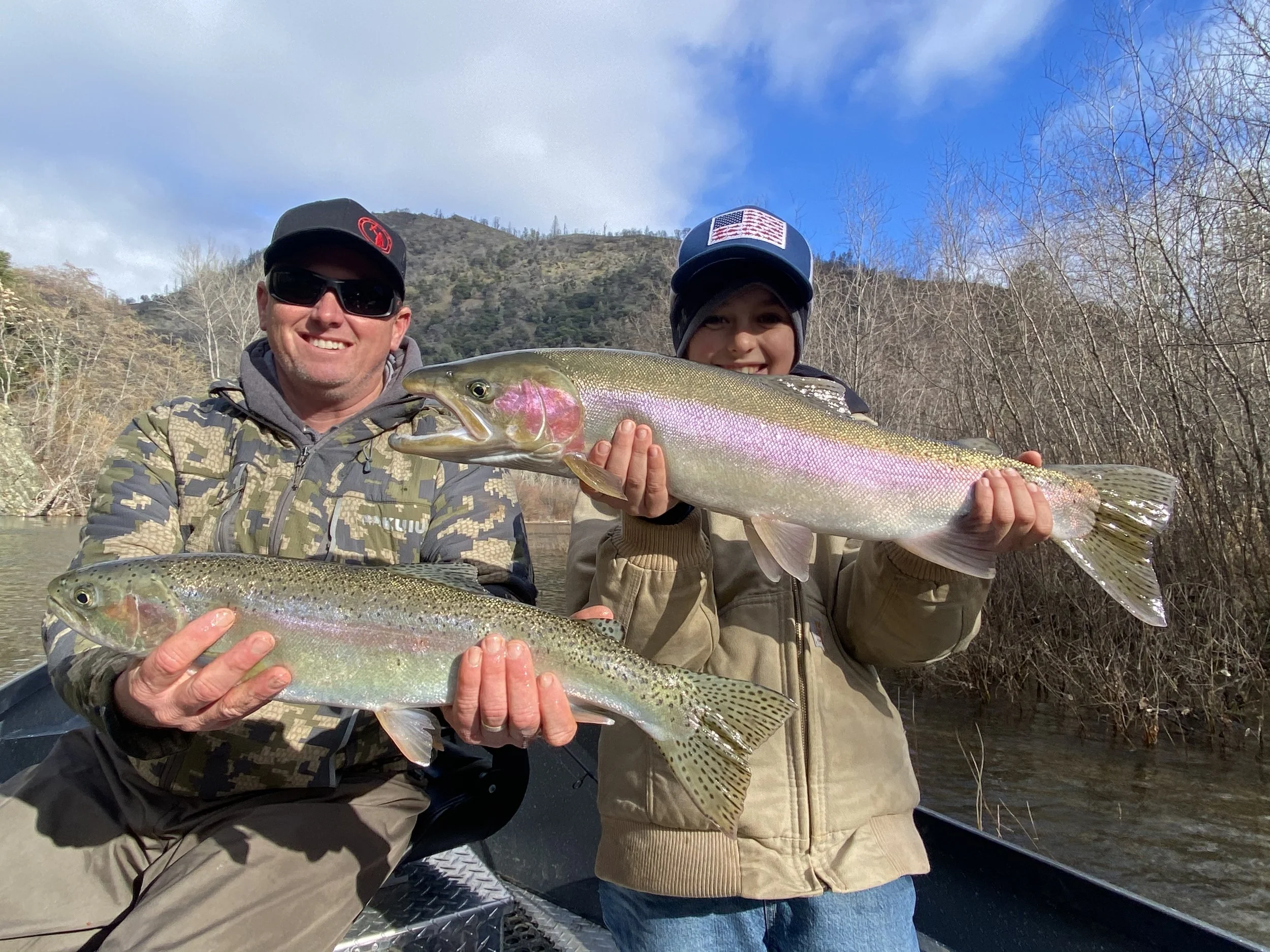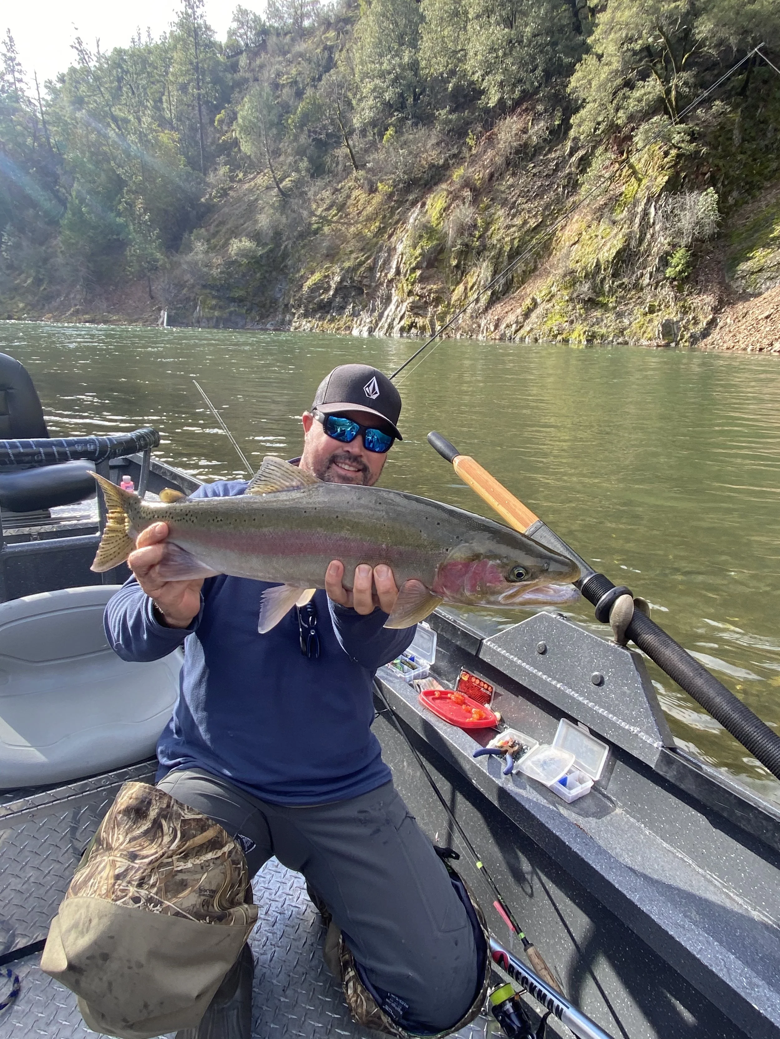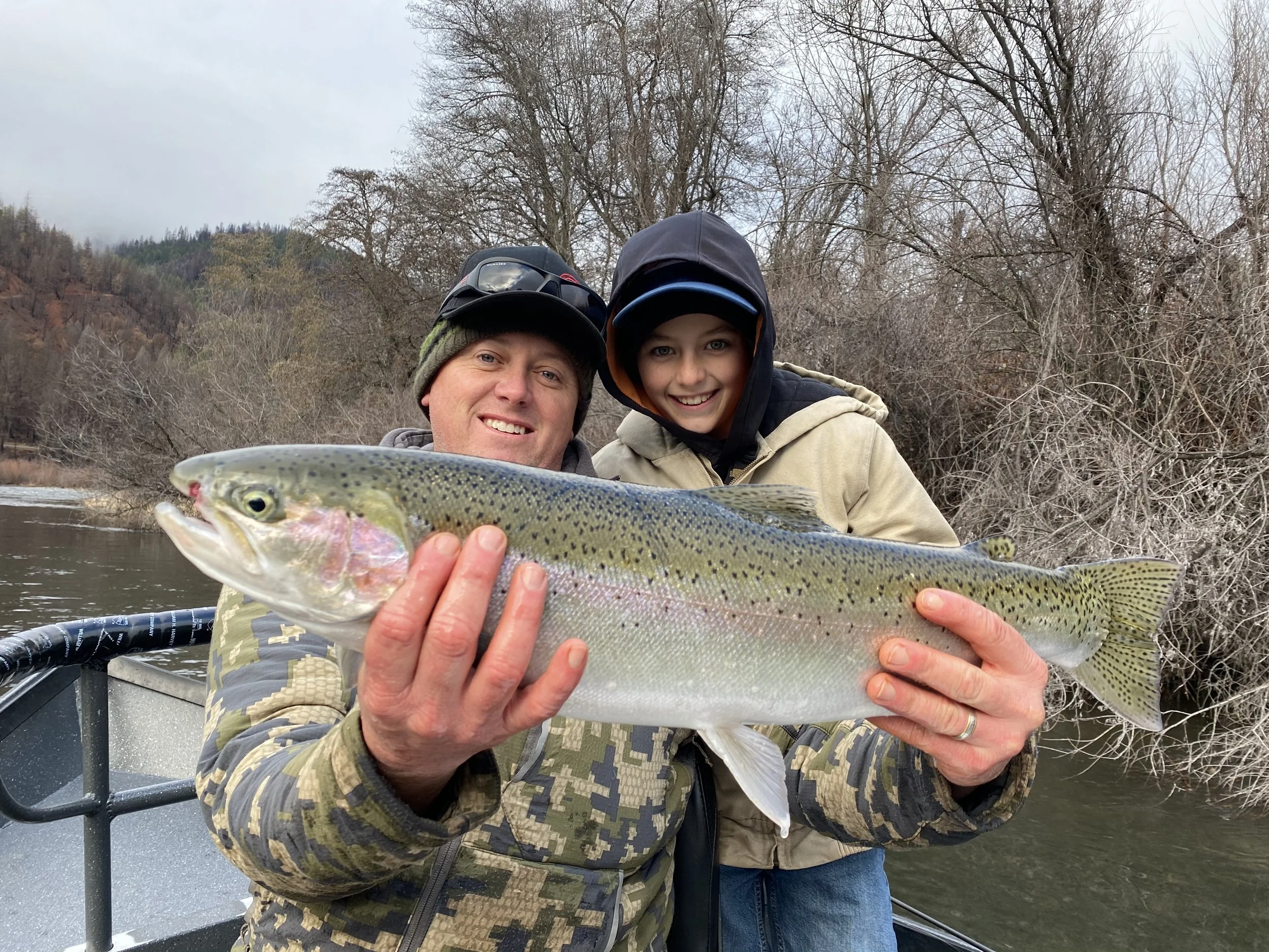 Trinity river steelhead fishing continues to produce some great fun and lots of action at this time, we have been running into some big pods of steelhead. The hole river has plenty of fish as of now. Finding fish is pretty easy to do so. Things will tighten up a bit as we go into this dry spell. But can’t complain with the fishing we are experiencing right now. Both fly fishing and spin fishing has been working great. Best fly’s have been brown rubber legs and a hard bead. There will be a lot of fish in the Lewiston to steel bridge area for awhile looking ahead. I’ve got 2 or 3 days available in February so if your looking to go give me a call, February will produce some of the biggest fish on the trinity river.