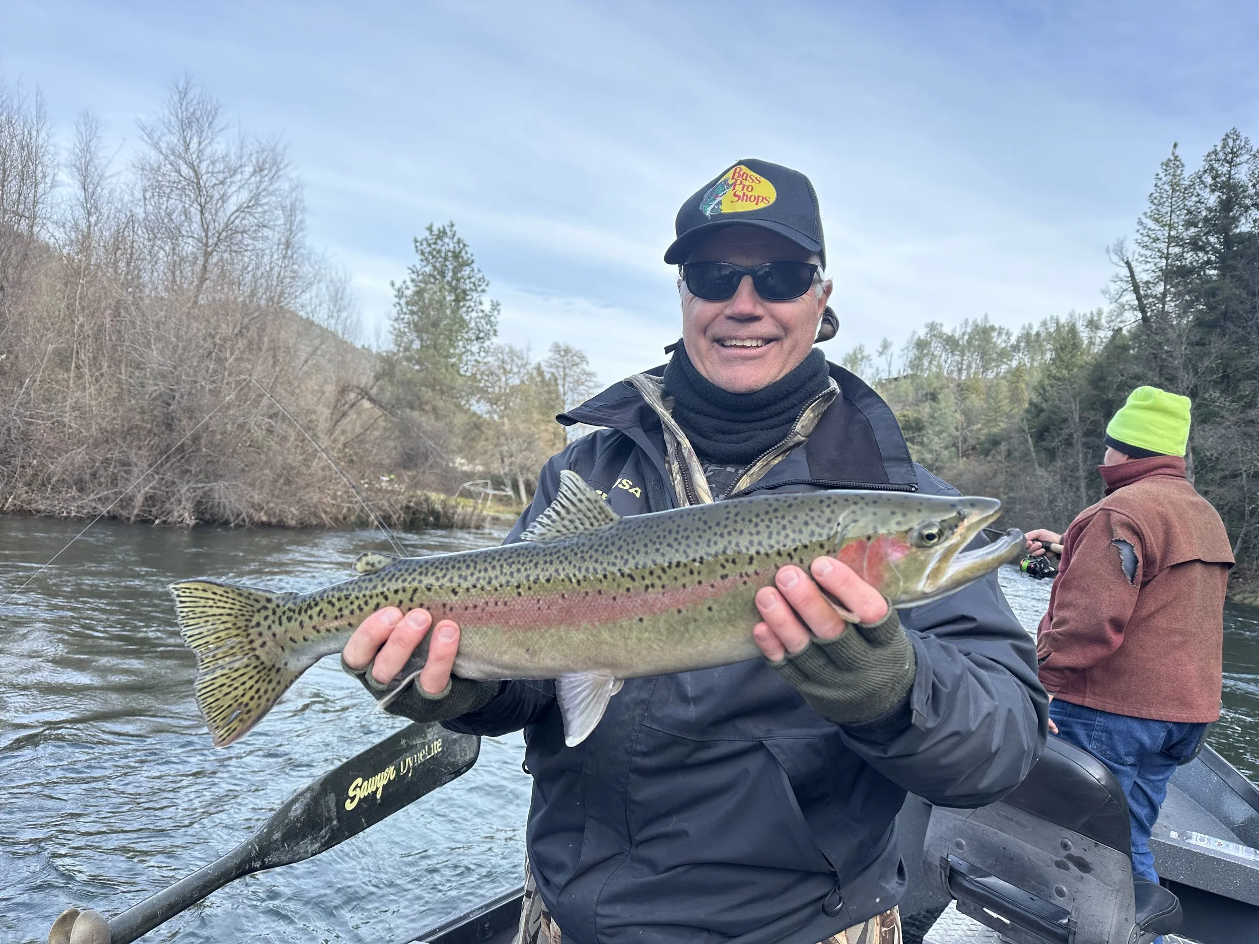 January–February is prime winter steelhead season on the Trinity. Many anglers are still connecting with chrome-steelhead when the river stays in shape.