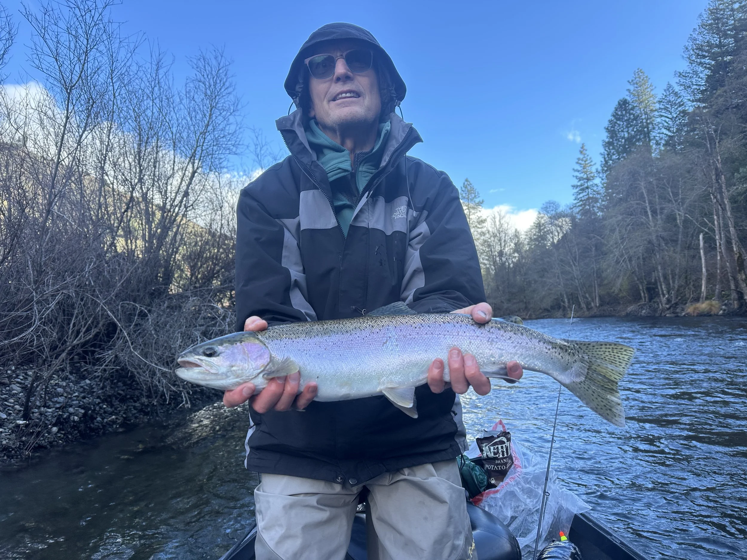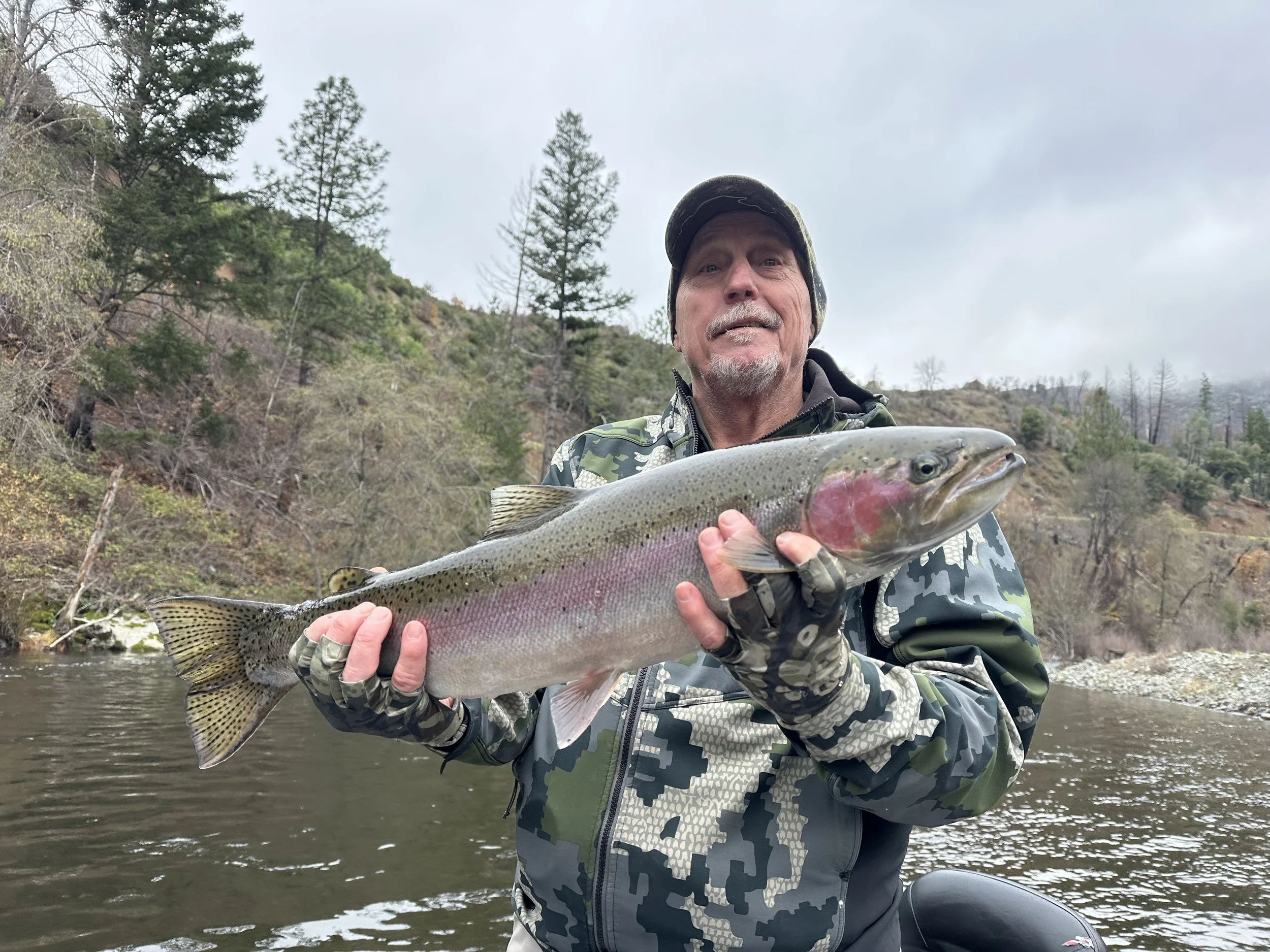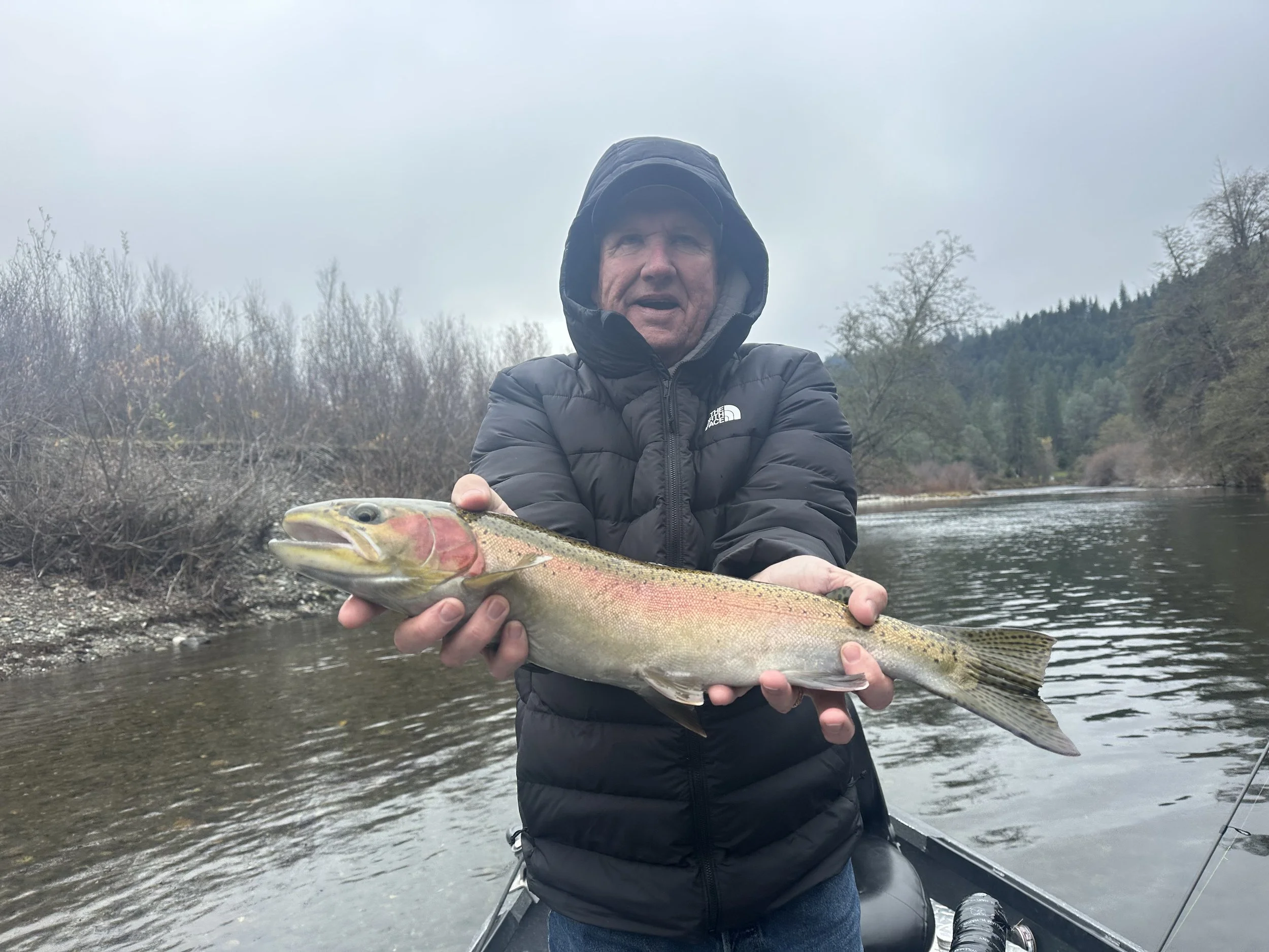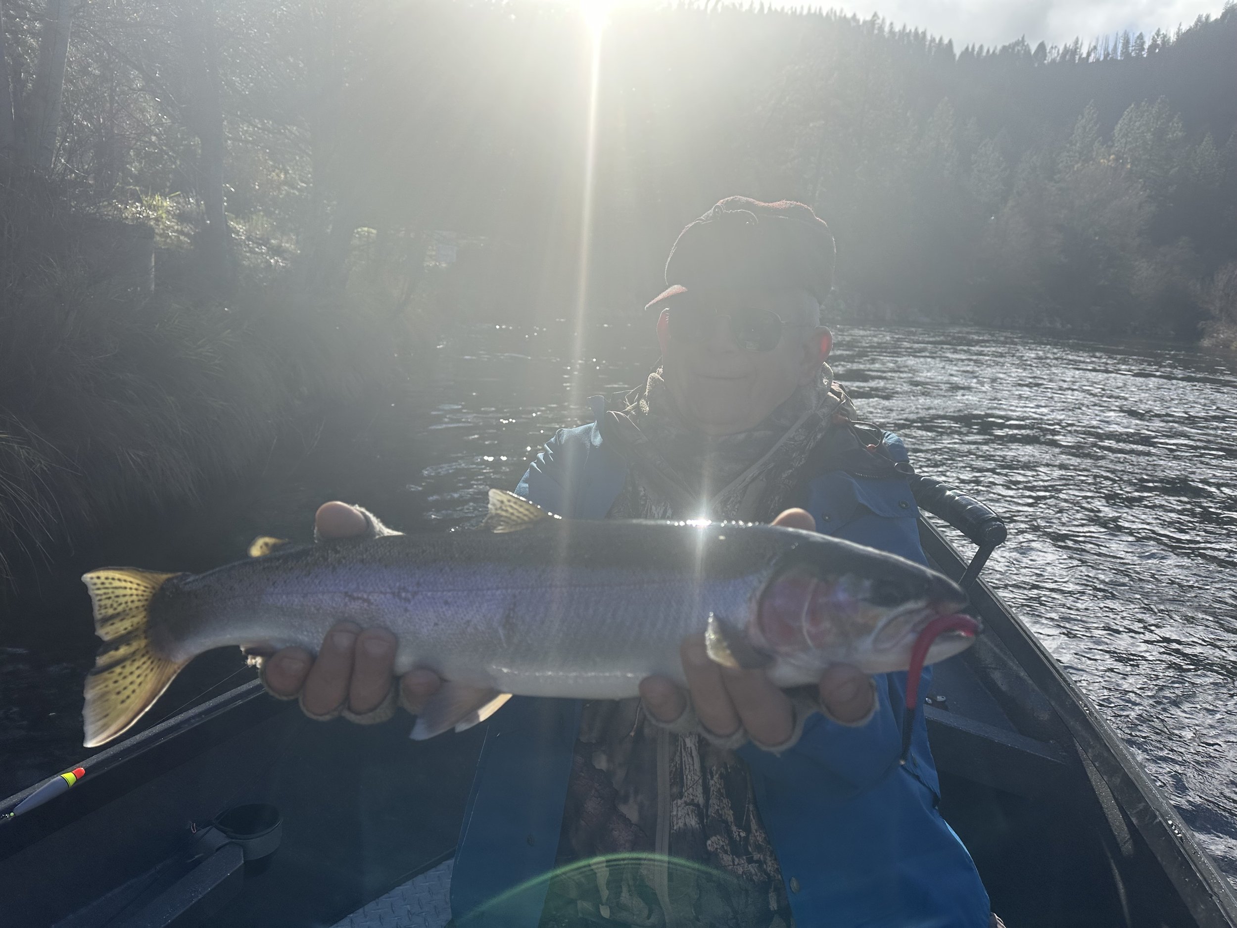 The Trinity River flows are sitting at 500 cfs down in the junction city area, with the early rains we have got, it has pushed a big batch of the fish up the river and tributaries. The big batch of fish are sitting up in the Lewiston to Douglas city area. I’m seeing very few new fish at this time coming up. That will change anytime as the season is just getting started. So now is the time to get your day booked for your wintertime steelhead fishing 🎣 I will be fishing daily until the end of February on the Trinity River,